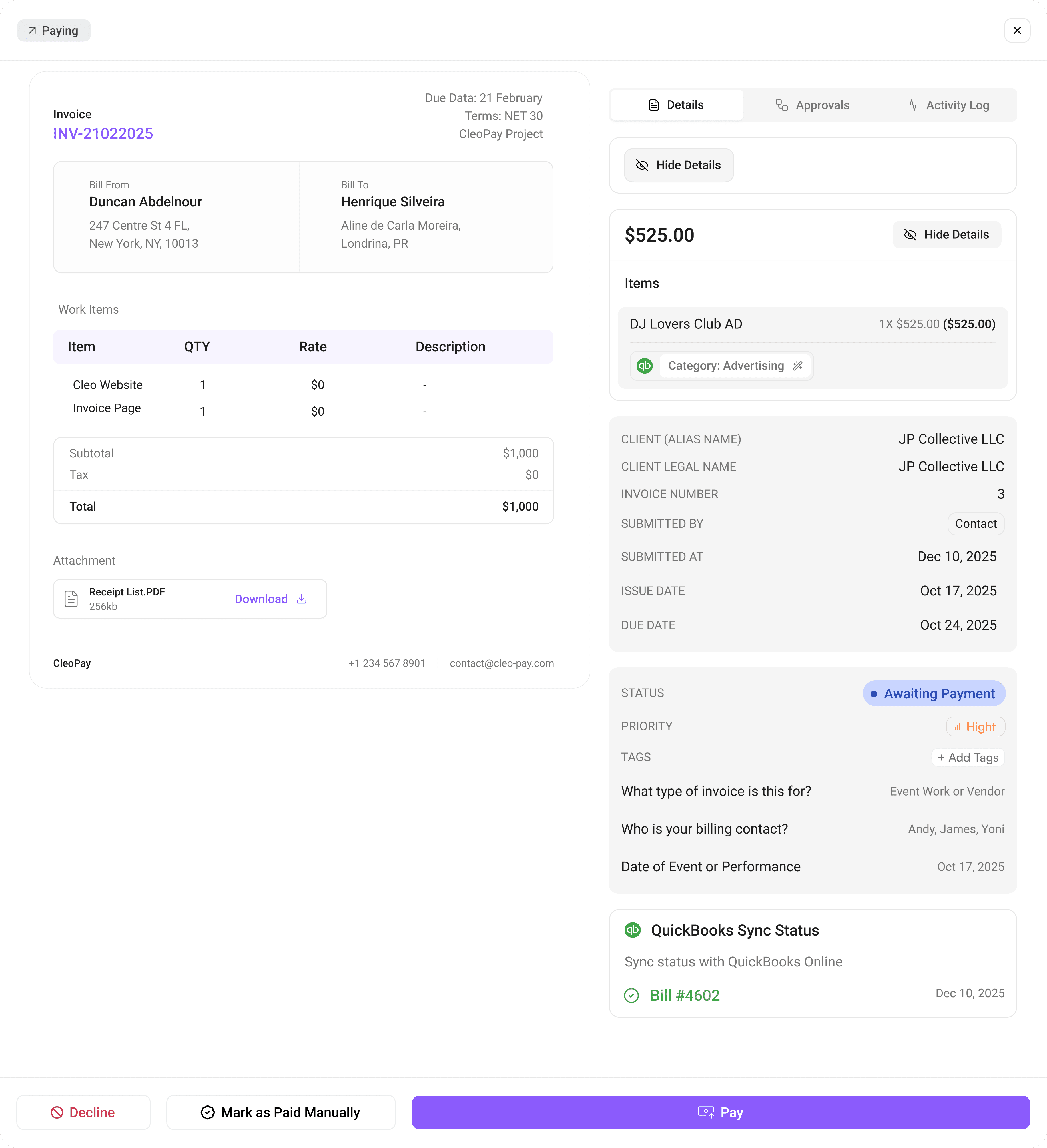 “CleoPay replaced a messy, manual invoicing process with a clean approval flow."